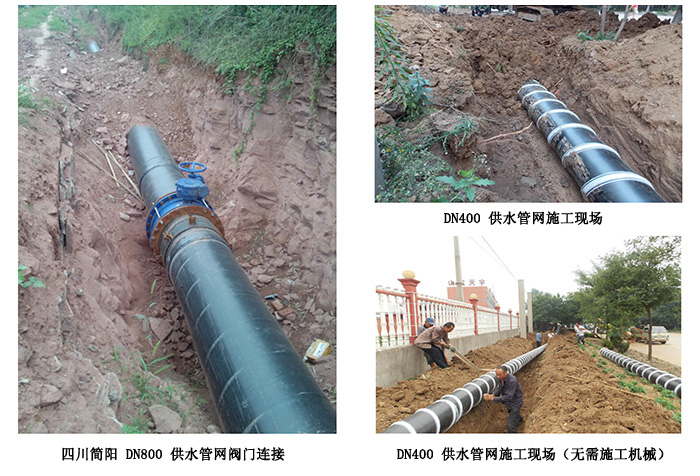 在工程施工方面,大口径火博电子·(中国)网站管也占很大优势。钢丝缠绕超高火博电子·(中国)网站管的比重约为1.2,而由于其壁厚很薄,直径可以小一号,其重量比铸铁管和PCCP管小5—10倍,搬运和安装非常轻便。超高火博电子·(中国)网站复合管的柔韧性很好,可以先在地面上连接好之后再下到管沟里,边挖沟边下管,边填埋。不用修路,不用大型机械,不用地基处理。铸铁管和PCCP管必须挖很宽的沟,管道下到沟里对正连接,受到很大局限,工程费用大幅上涨。在需要穿越江河的情况,超高分子量聚乙烯火博电子·(中国)网站管可用沉入法在江河底敷设,也可用拖拉法从江底隧道或管道中拖曳而过,这都是铸铁管和PCCP管做不到的。
